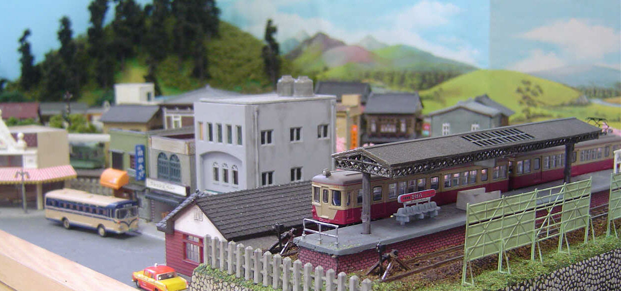 僅か90cm×60cmのコルクボードの上に作ったレイアウトであり、そこに3つの駅を設置したものだが、それぞれの駅により、そして、そこにある車両により、異なった雰囲気を醸し出す。