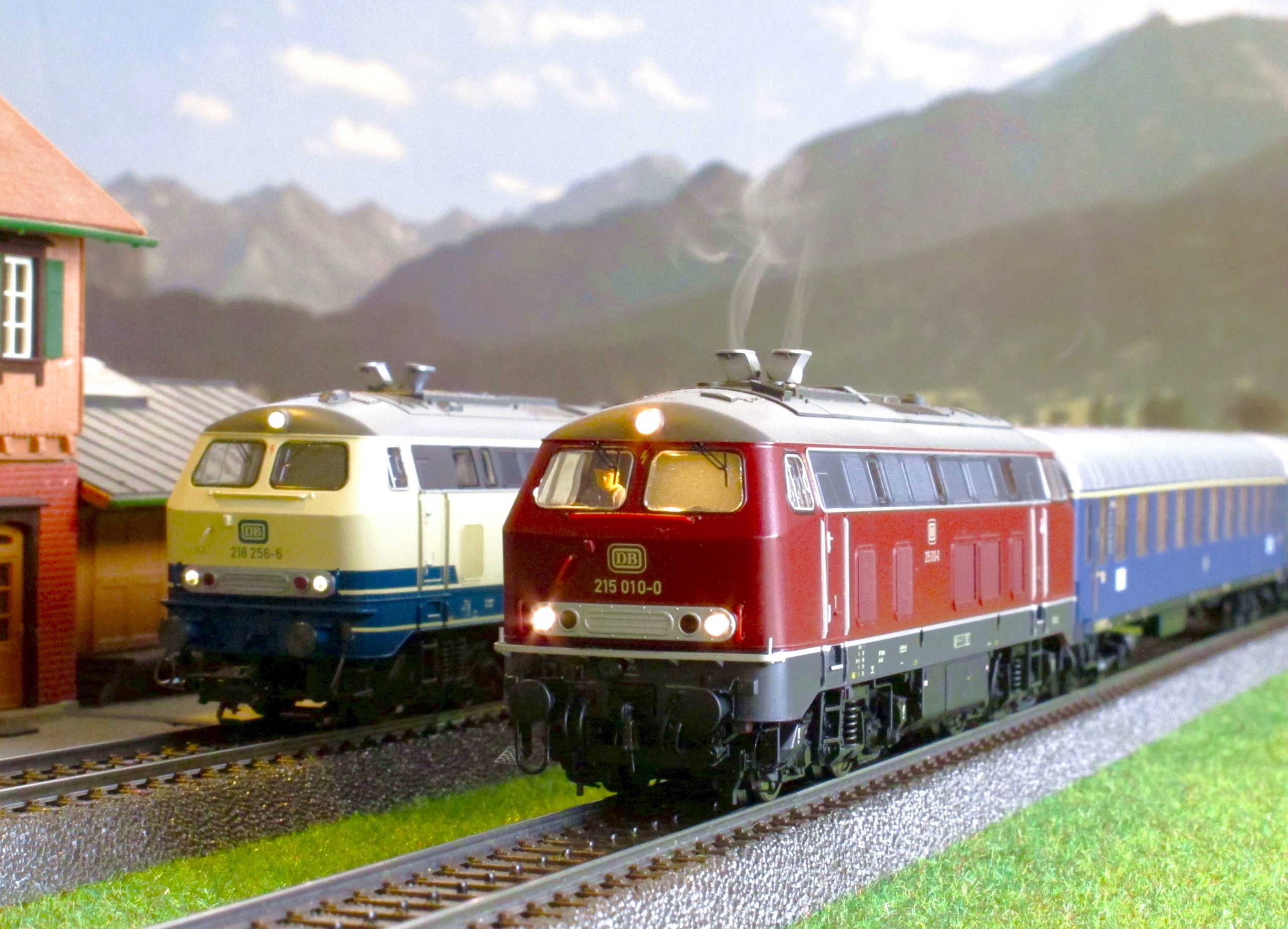 上の写真、左がメルクリンのBR218型、そして右が件の製品で、メーカーはESU社、形式はBR215で外観は殆ど同じだ。まずは、ご覧のように煙が出ている。