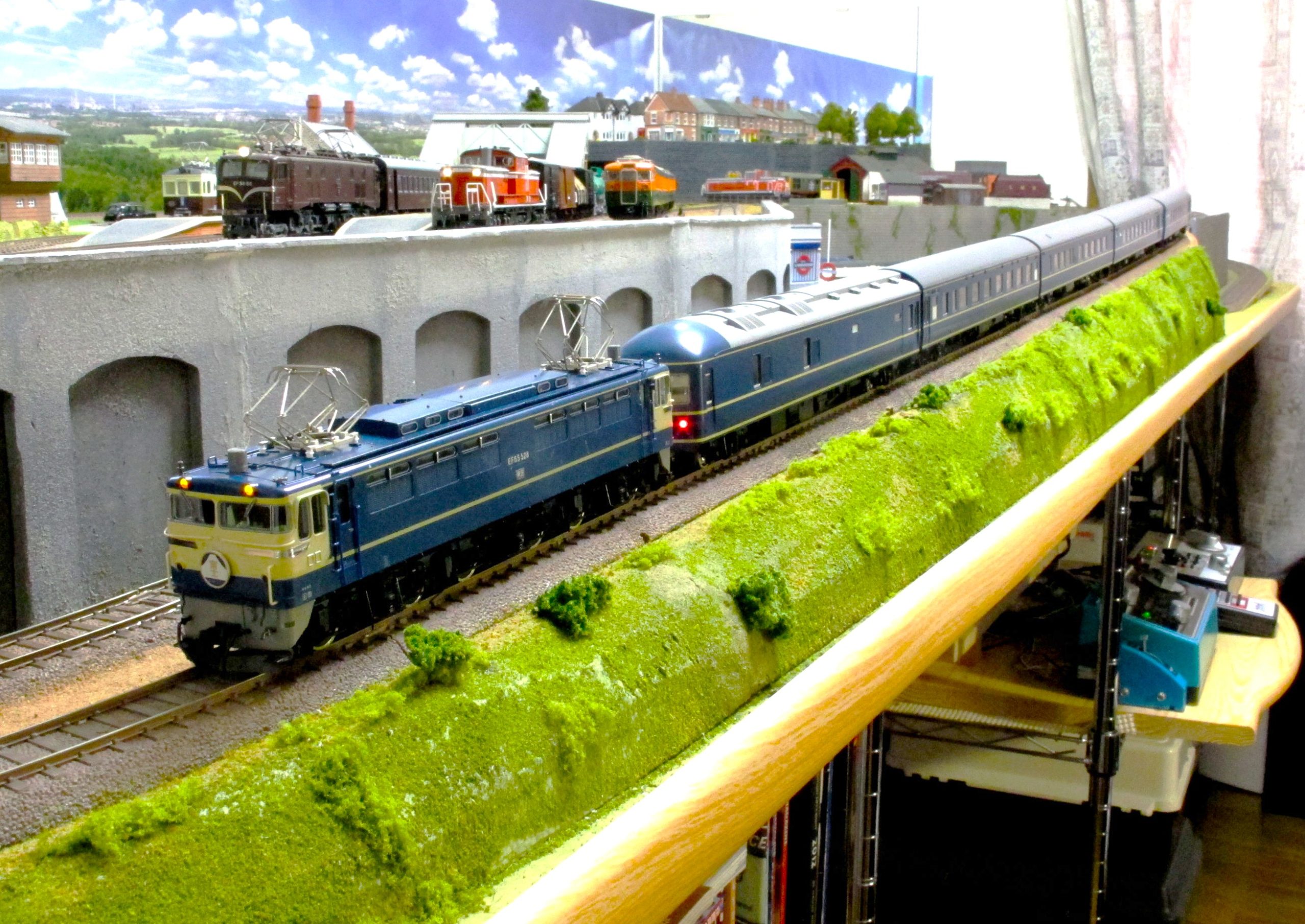 DCCサウンド化したEF65は、下り坂も上り坂でもBEMF機能により、一定の速度で安定して走る。