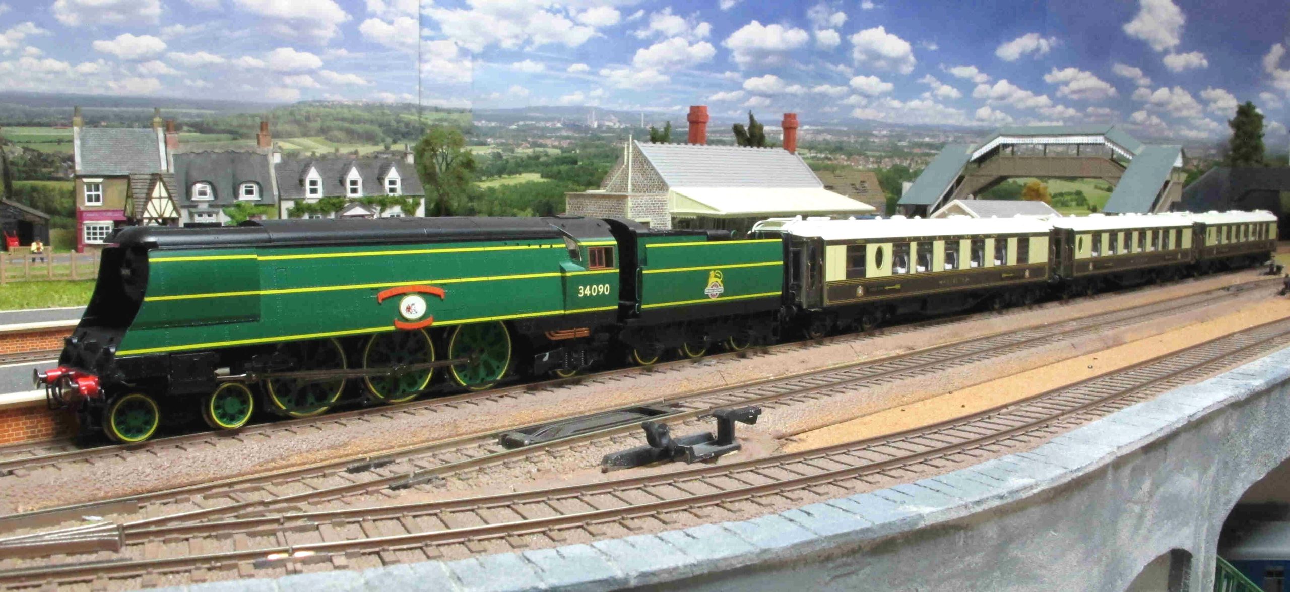 やはり本物はカッコ良い。バトル・オブ・ブリテン機関車の色の鮮やかさも不自然ではないし、後ろのプルマン客車とも不思議と調和しているではないか。