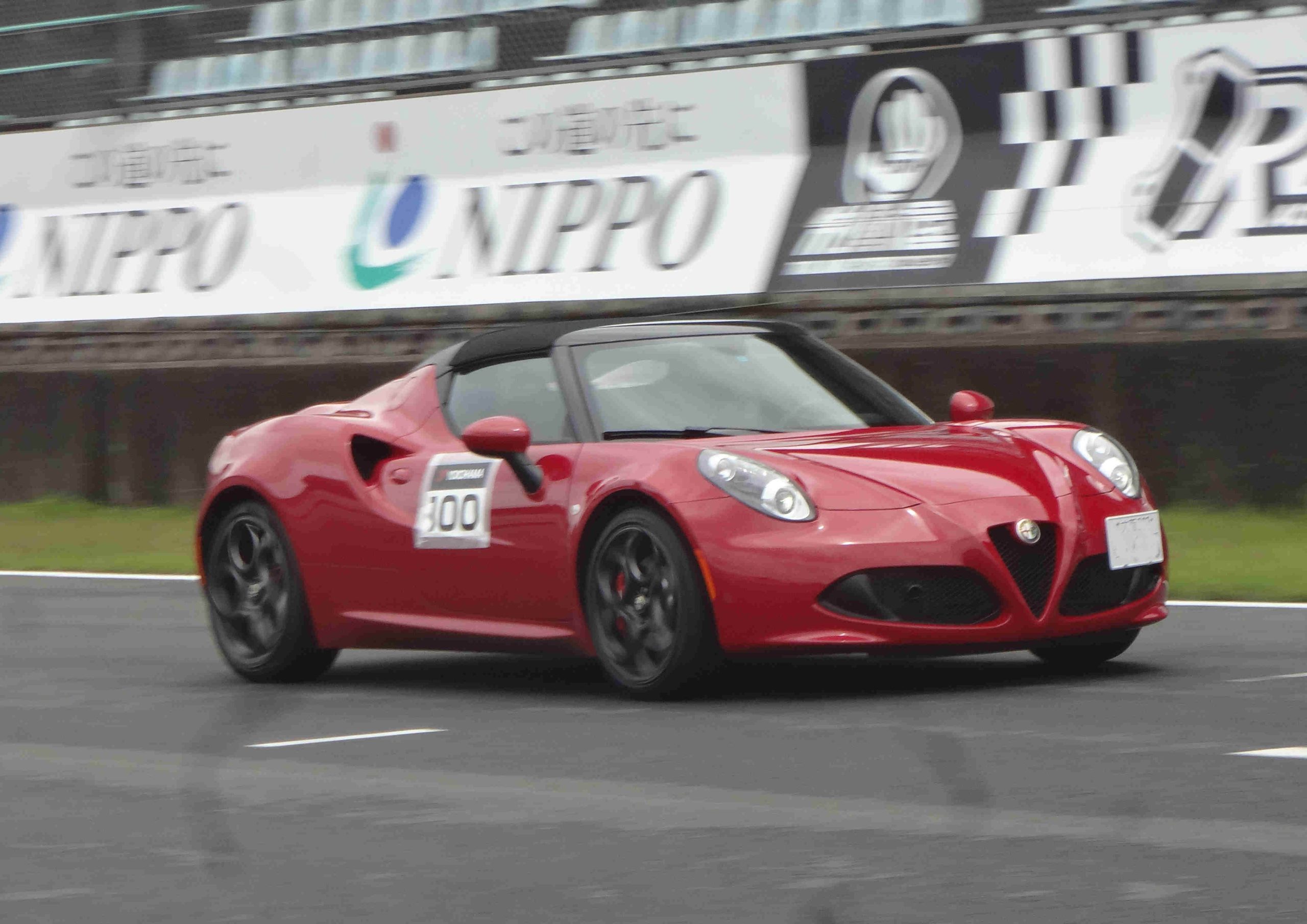 インストラクターとして参加させて頂いているが、今年、私が使用する車としてアルファ ロメオ4Cを用意して頂いた、そう言えば昨年も黒い4Cを使わせて頂いたが、今年は赤の4Cスパイダーだった。