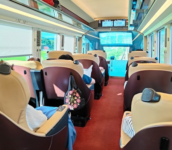 ハイデッカーで見晴らしが良く、静かな車内。先頭車は前面展望が望める。