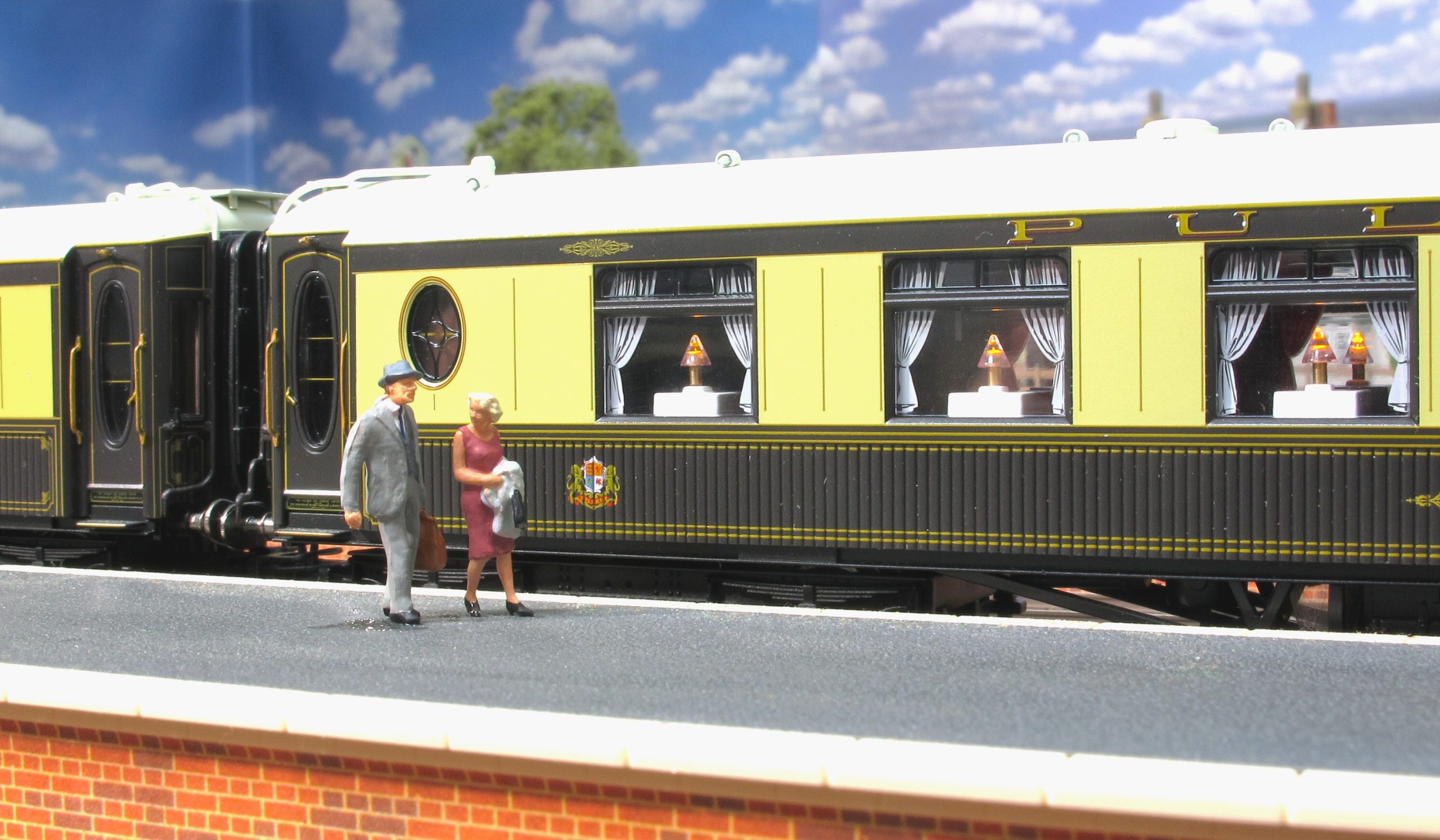 車両は英HORNBY製だが、造作の素晴らしいカーテンや点灯しているテーブルライト、また連結部付近やドア周りの細密な作りなどに注目頂きたい。