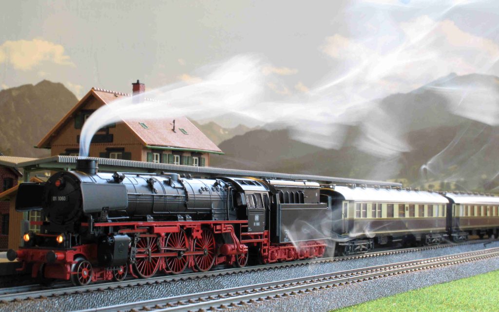 こちらはメルクリンのDB 01型機関車の発煙の模様。