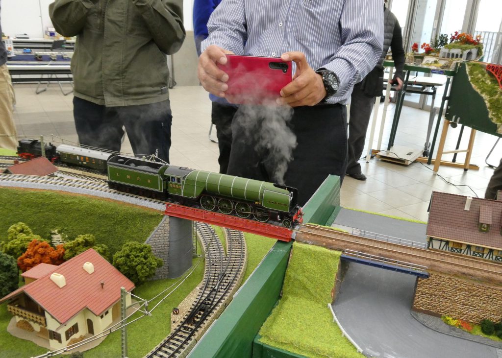 模型の発煙装置はトラブル気味で煙が出なくなりがちだが、メルクリンの発煙装置は安定していて、ご覧のように綺麗に煙を吐く。