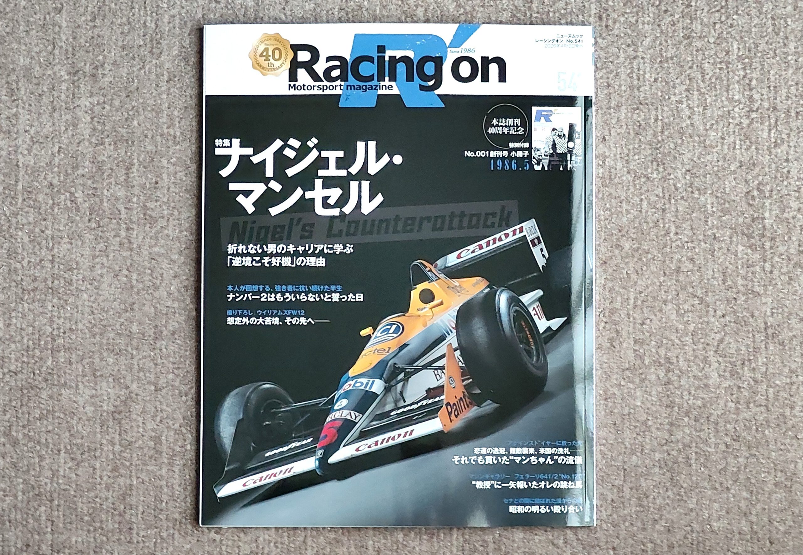 今、発売しているレーシングオン誌だ。ナイジェル・マンセルの特集をするとのことで編集部から連絡を頂き、私の以前の写真と昔話をした。